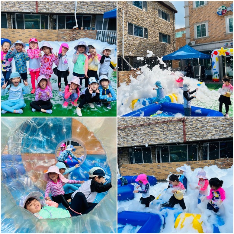 보들보들 거품과 함께 물놀이를 했어요!