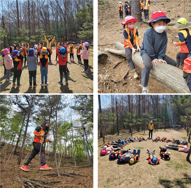 숲체험 인사나누기 & 밧줄체험
